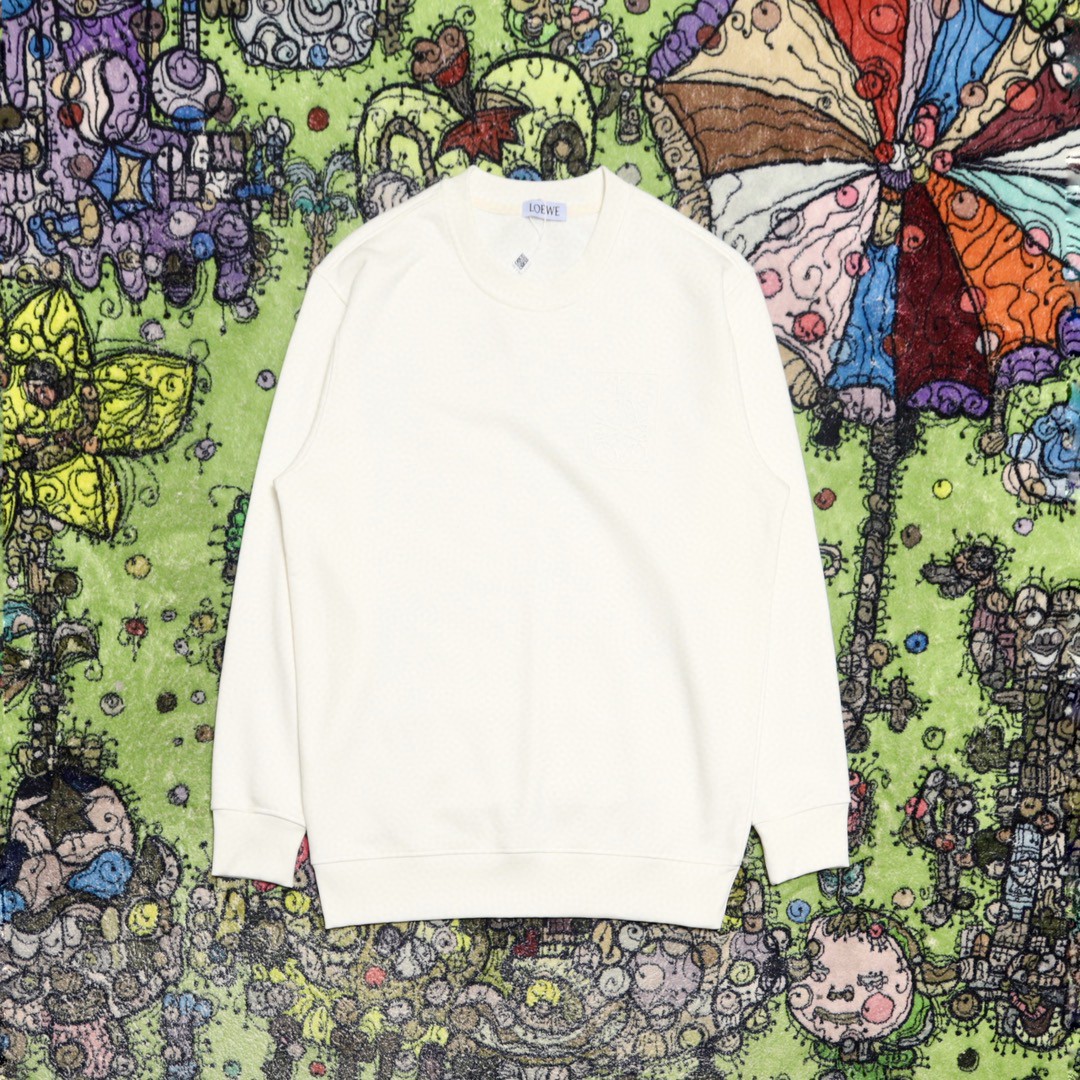 Loewe 罗意威 胸口字母印花卫衣 圆领 长袖 秋冬 白色