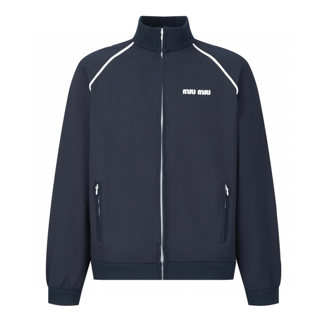 MIU MIU 缪缪 学院风字母logo刺绣拉链夹克 长袖 外套 蓝色 MMF881-148O-F0008-S-OOO
