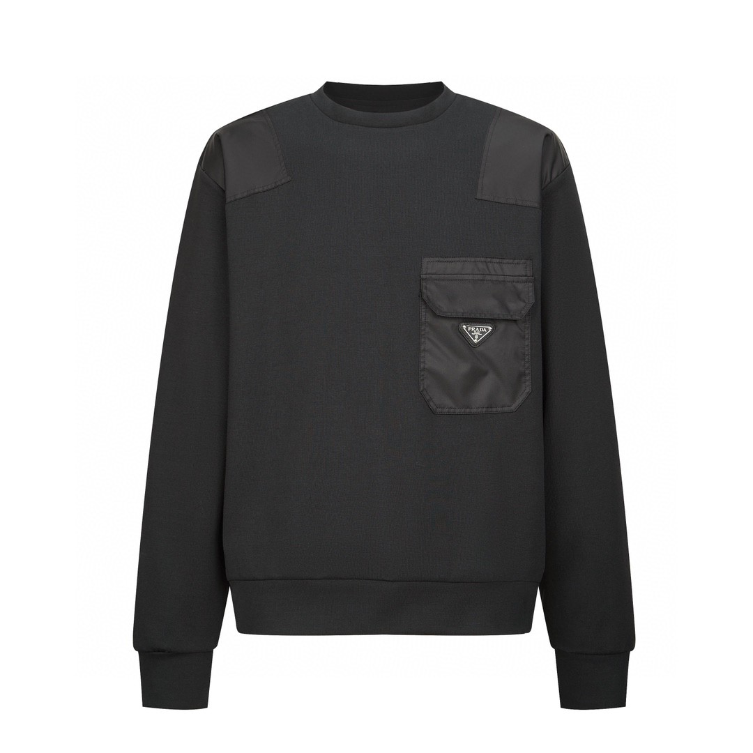 PRADA 普拉达 纯色尼龙拼接口袋卫衣 圆领 长袖 黑色 UJL35B-11JE-F0806-S-OOO